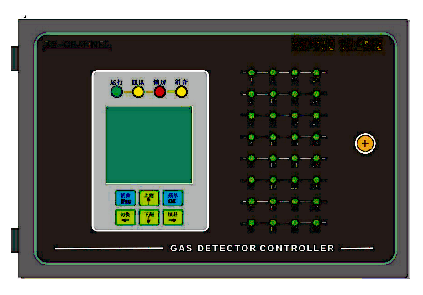 通道與彩色LED一一對(duì)應(yīng):藍(lán)色指示故障;綠色表示濃度正常;黃色表示一級(jí)報(bào)警(低報(bào));紅色表示二級(jí)報(bào)警(高報(bào))